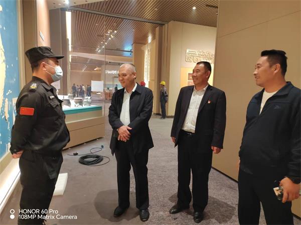 在殷墟博物館,魏東拜訪了殷墟博物館黨總支書記、常務(wù)副館長趙清榮和副館長徐河建,深入了解館方需求以及安保工作中的不足之處。趙清榮對特保大隊(duì)殷墟中隊(duì)認(rèn)真負(fù)責(zé)的工作態(tài)度給予了充分肯定。魏東表示,公司將按照博物館領(lǐng)導(dǎo)要求和合同約定,全力以赴做好新展館開館前的各項(xiàng)安保工作。隨后,魏東來到殷墟新展館,認(rèn)真查看駐點(diǎn)勤務(wù)情況,詳細(xì)了解特保隊(duì)員的工作環(huán)境和思想動態(tài)。魏東強(qiáng)調(diào),目前新展館處于施工沖刺和前期布展的關(guān)鍵階段,特保隊(duì)員一定要克服困難,履職盡責(zé),為新展館順利開館提供安全保障。