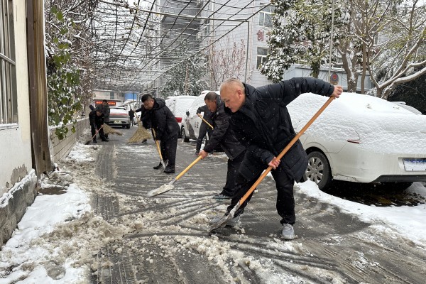 公司黨委書記、董事長王高峰帶領(lǐng)班子成員率先垂范,公司干部職工積極響應(yīng),有序展開清冰掃雪工作。大家不畏嚴(yán)寒,分工明確、團(tuán)結(jié)合作,手持鐵锨、揮動掃帚,鏟除積雪、清掃路面,配合默契、干勁十足?,F(xiàn)場“揮舞的鐵鍬”成為了皚皚白雪中暖心的一道風(fēng)景線。由于準(zhǔn)備充分,組織有力,發(fā)動及時,經(jīng)過1個多小時的不懈努力,辦公樓院內(nèi)和門前三包積雪基本清理干凈,保障了道路暢通安全,路面恢復(fù)了平日的干凈和整潔。