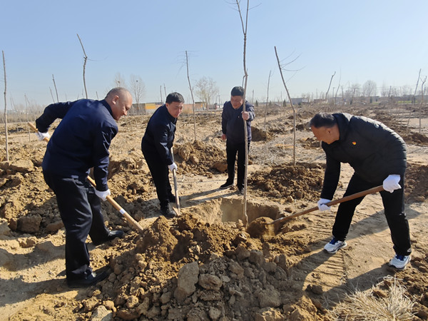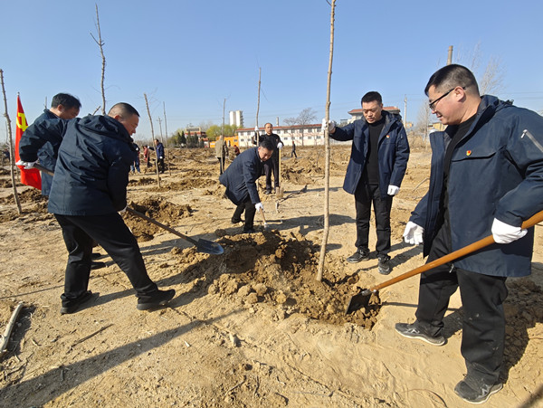 春風拂面催新綠,黨旗飄揚踐初心。為全面貫徹落實黨的二十屆三中全會精神,踐行習近平生態(tài)文明思想,牢固樹立“綠水青山就是金山銀山”理念,3月18日上午,公司黨委領導班子帶領50余名黨員干部開展“植樹添新綠、黨旗映初心”主題黨日活動。