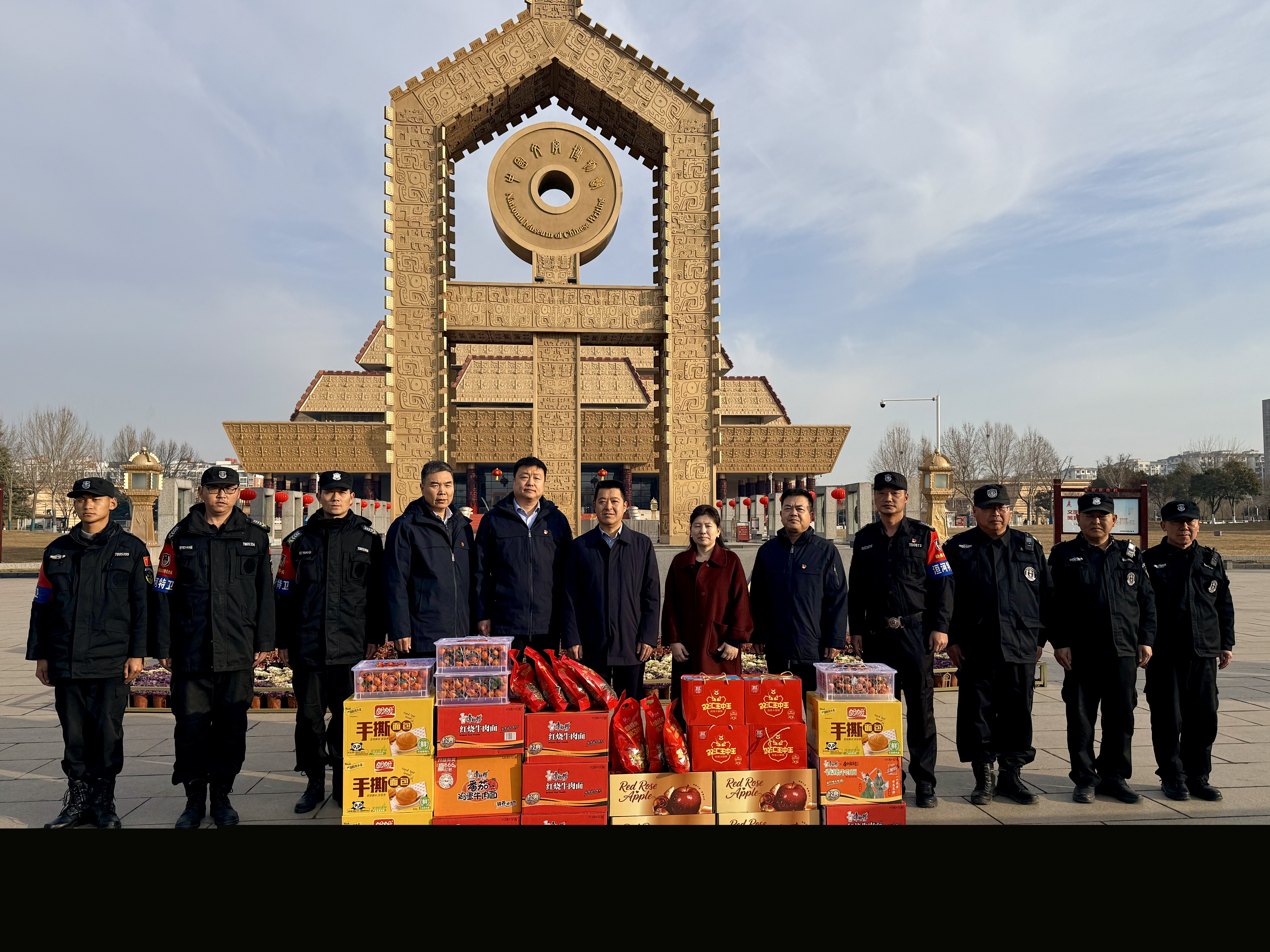 慰問組先后來到中國文字博物館、中國聯(lián)通、中原銀行、昌泰小區(qū)、市二中等重點服務(wù)單位及執(zhí)勤崗點,與一線保安員親切交談、噓寒問暖,詳細了解節(jié)日值班安排、勤務(wù)開展和后勤保障情況。公司領(lǐng)導對大家“舍小家、顧大家”的奉獻精神給予高度贊揚,充分肯定大家在團圓時刻堅守崗位、在平凡崗位踐行擔當?shù)倪^硬作風。