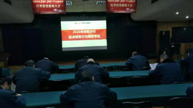 會后,派駐工行營業(yè)廳網(wǎng)點保安員進行了《工行網(wǎng)點執(zhí)勤保安隊員行為規(guī)范操作》開卷考試。大家表示,要用實際行動盡職盡責(zé)干好本職工作,為工行的安全貢獻自己的力量。