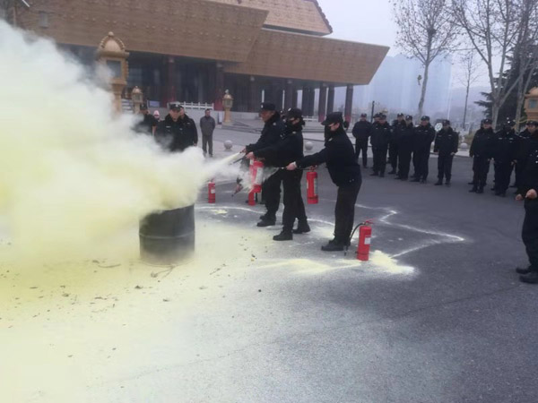 為確??蛻魡挝簧⒇敭a(chǎn)安全,保障春節(jié)期間安全無事故,特保大隊派駐中國文字博物館中隊按照客戶春節(jié)前消防防控要求,結(jié)合公司《關(guān)于開展安全生產(chǎn)大檢查大排查的通知》,每日不同班次相繼進行消防訓(xùn)練。