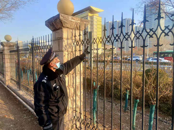 牛年春節(jié)臨近,為度過一個(gè)安寧祥和的新春佳節(jié),人防二大隊(duì)提前安排布局,做了周密的準(zhǔn)備工作。近一周來,該大隊(duì)主管隊(duì)伍管理和崗點(diǎn)建設(shè)的干部,深入基層崗點(diǎn)查崗查哨,了解隊(duì)伍思想動(dòng)態(tài),就進(jìn)行節(jié)前安全隱患大排查提出具體要求,叮囑隊(duì)員站在講政治的高度,堅(jiān)守崗位,認(rèn)真履行職責(zé),把各項(xiàng)安全措施落到實(shí)處。守土有責(zé),守土盡責(zé),嚴(yán)格執(zhí)行門衛(wèi)管理制度,搞好消毒滅殺,講究個(gè)人衛(wèi)生,切實(shí)做好疫情防控工作,確保不發(fā)生任何安全責(zé)任事故和疫情防控失職行為。圖為隊(duì)員在進(jìn)行安全隱患排查。