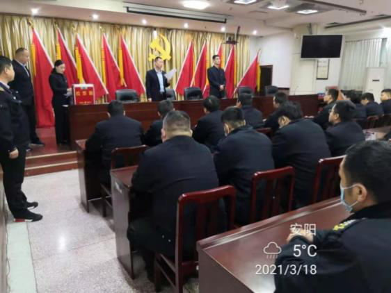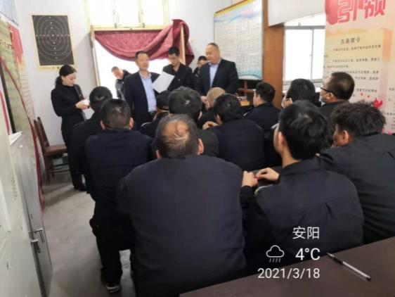 3月18日上午,公司考核組庫擁軍、翟新杰、楊曉一行蒞臨守押七大隊,開展2020度中層干部考評工作。
